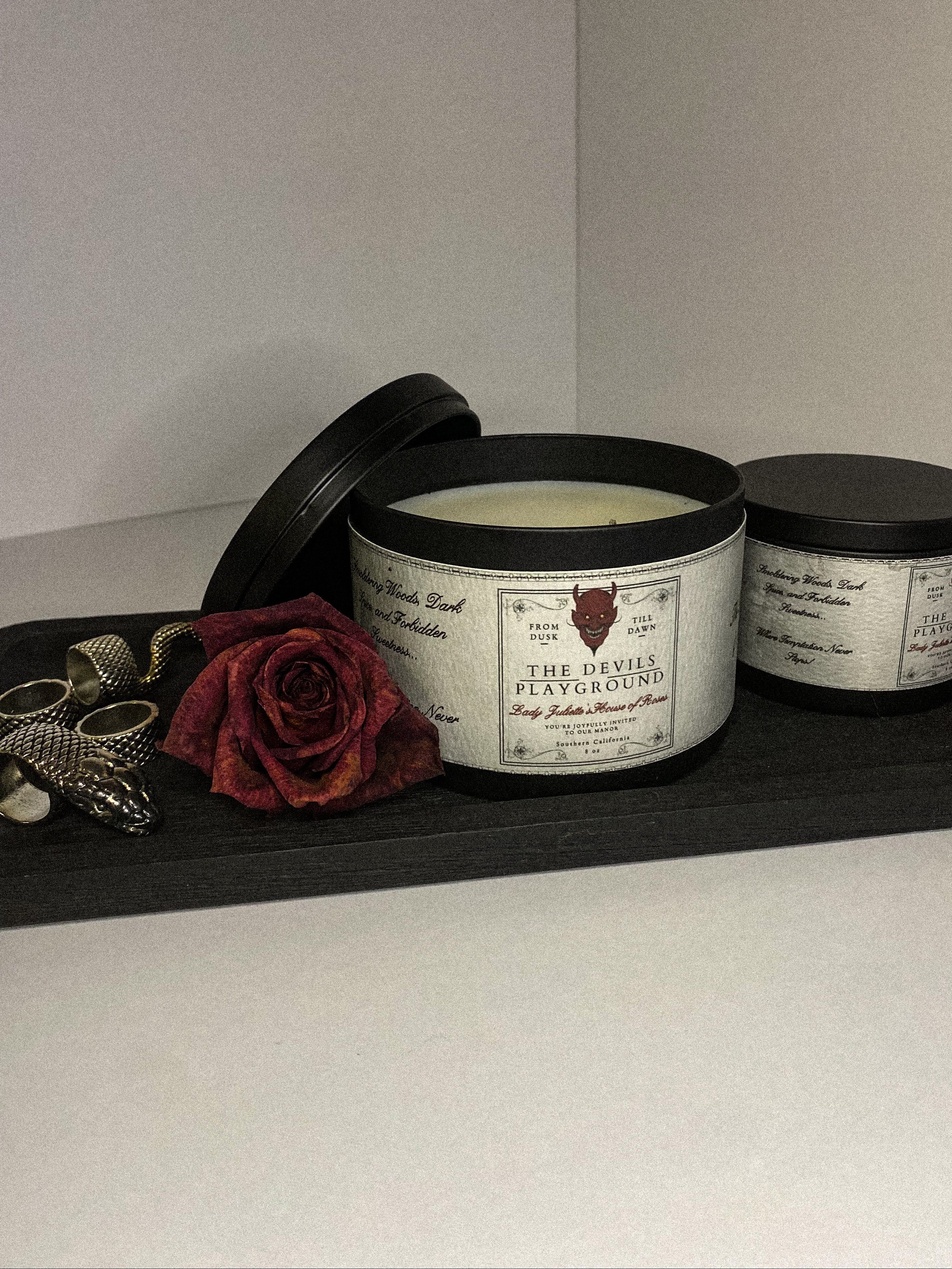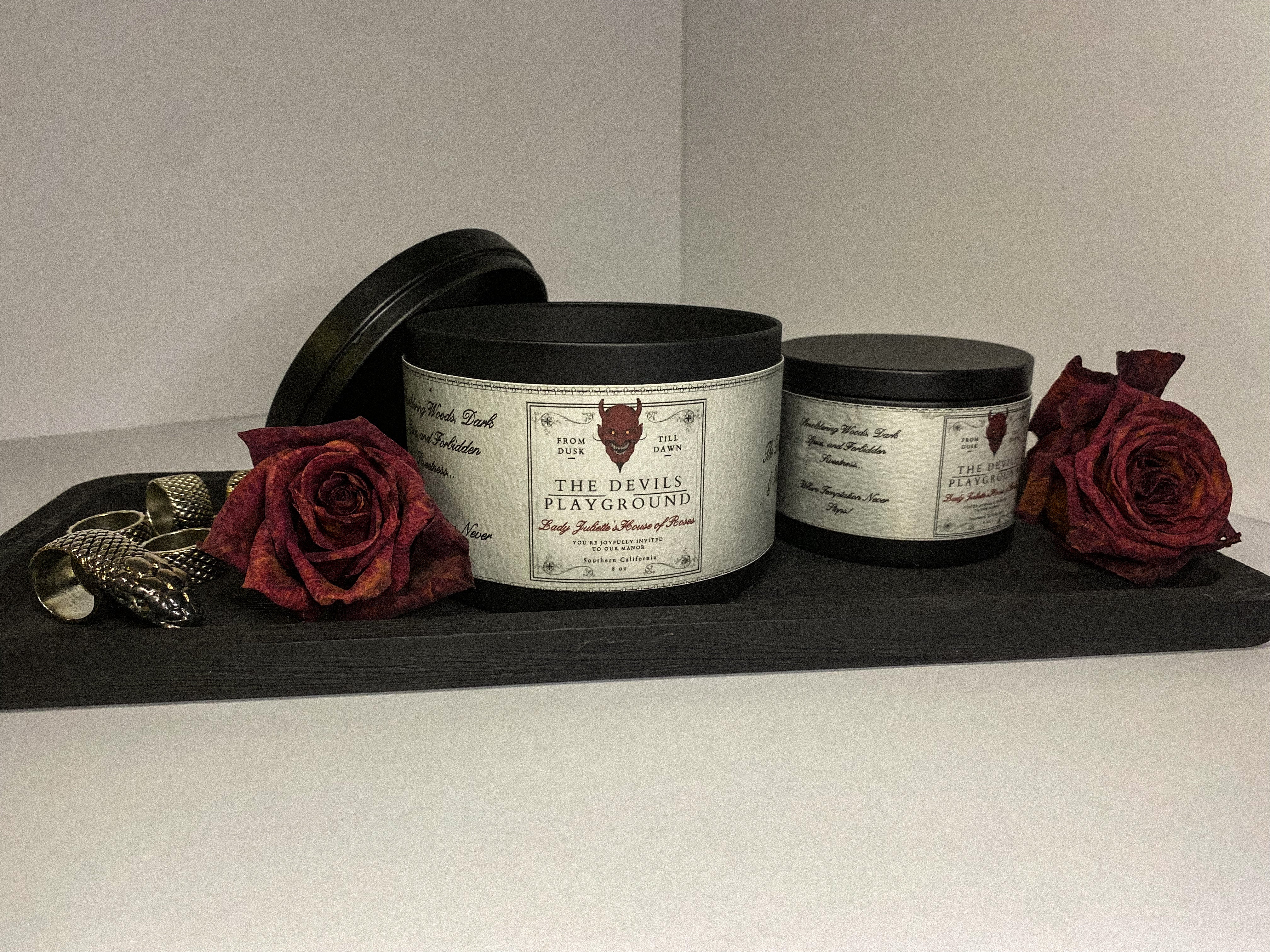 Step into temptation. A forbidden blend of Rose, Honey, Cedar, Musk, & Fir Balsam  this candle burns with sinful allure. Each flicker teases the senses — warm, dark, and dangerously inviting.